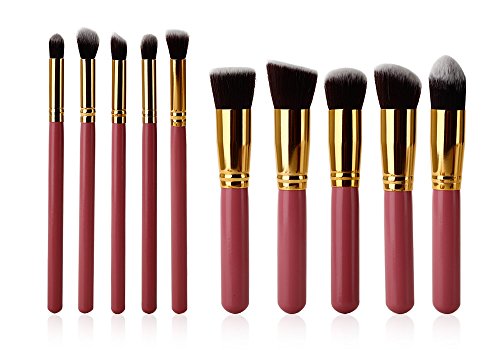 - Title : AGM® 10 Pcs Professional Handle Cosmetic Kabuki Makeup Foundation Blending Brush Set Kit. (Pink+Gold)
