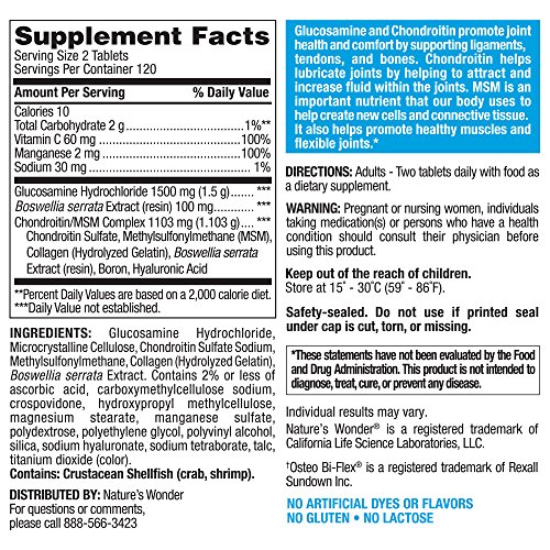 Product Description Nature's Wonder Gluc Chond Triple Strength MSM. Glucosamine and Chondroitin promote joint health and comfort by supporting ligaments, tendons and bones. 0