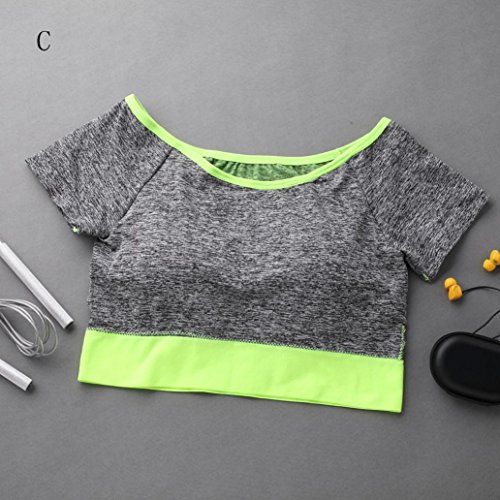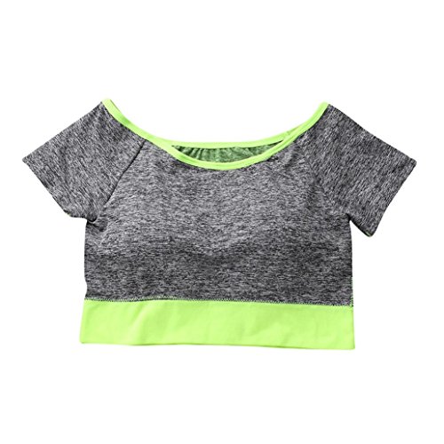 (Zikong)/Health Care/Alternative Medicine/DIRECT FROM USA/Women Quick Drying Sports Workout Gym Yoga Removable Padded Bra short Sleeve Tank Top Blouse (C...