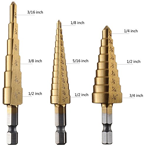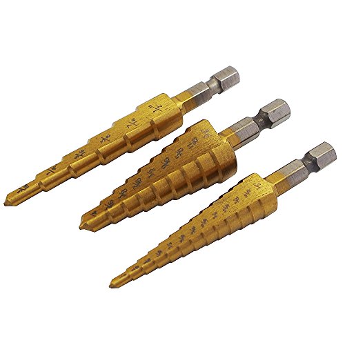 Yakamoz 3PCS High Speed Steel HSS Titanium Step Drill Bit Set Quick-change 1/4" Hex Shank SAE - Total 28 Sizes