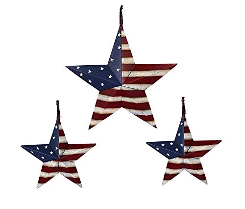 Set of 3 Americana Patriotic Wall Decor Star Wall Barn Metal 3D Fence Stars