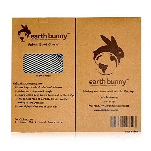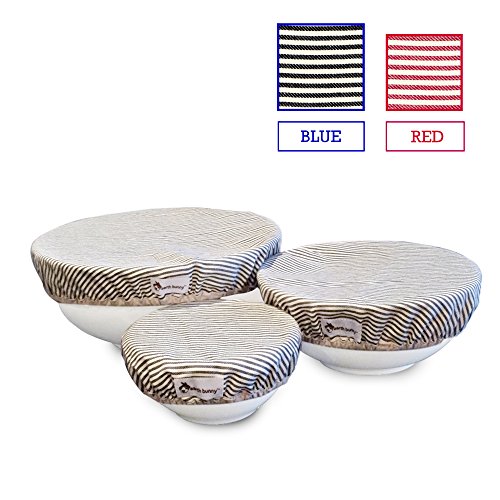 Earth Bunny Fabric Bowl Covers - Blue Stripes | Set of 3 - Small, Medium, Large | 100% Cotton Cloth with Elastic Edging | Eco Friendly, Washable and Reusable