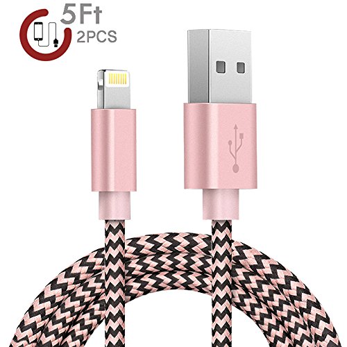 iPhone Cable,Zeuste 2Pcs 5Ft/1.5M Nylon Cord Lightning Cable USB Charging iPhone Charger for iPhone 7/7 Plus/6/6 Plus/6S/6S Plus,SE/5S/5,iPad,iPod Nano 7