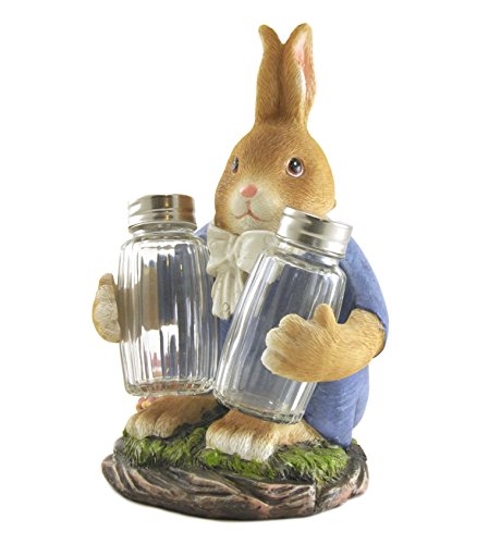 Rabbit Bunny Figure Sculpture Statue Tabletop Salt Pepper Shaker Set, 8"