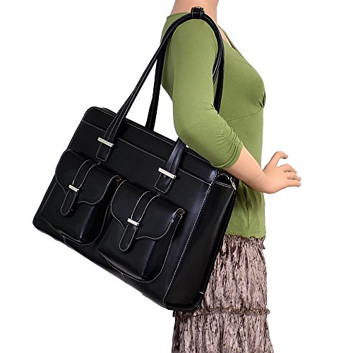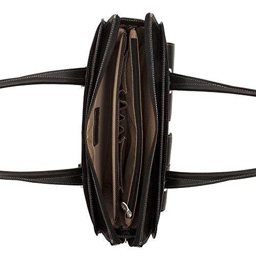Studio : McKlein Publisher : McKlein Product Description Two small front pockets with magnetic snaps. Front and back pocket for files. Main compartment divided by secure zipper pocket. Built-in padded laptop sleeve that fits laptops up to 15.4”. Interior organizer section for business cards, pens, keys, cell phones and notepads. Tubular over the shoulder straps Orange, green, blue, and pink cases are trimmed in sand.Material: Italian LeatherSize: 17" x 4.5" x 12"Laptop interior dimensions: 15" x 2" x 10"Fits most laptops up to: 15.4" Shoulder strap drop length: 12"Weight: 3.5 lb McKlein's limited lifetime warranty 0