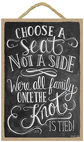 (SJT14810) Choose a seat not a side, We're all family once the knot is tied 7" x 10.5" Wood Plaque Sign featuring the chalk artwork of Lily & Val