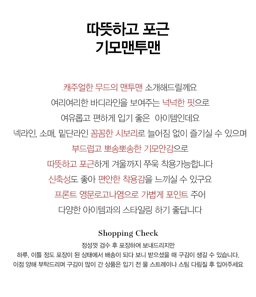 .같은 사이즈라도 체형에 따라 핏감이 조금씩 다를 수 있습니다.