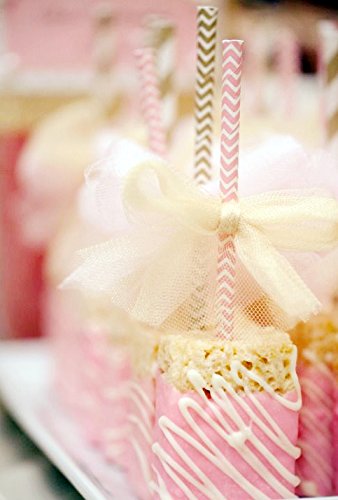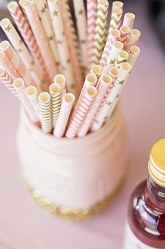 -. Title : Gold and Pink Straw Mix Star Dots Chevron Stripe 125 Pk