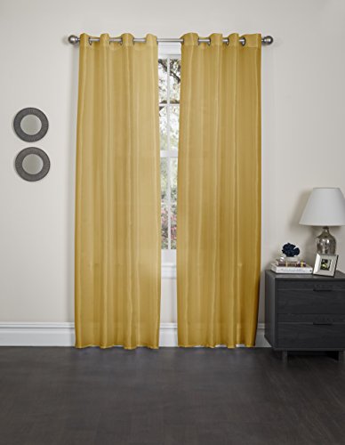 Kashi Home Holly Collection Window Treatment / Curtain / Sheer Faux Silk with Grommet Top 57" X 90", Mustard