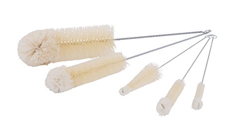 - Clean everything from narrow vases and spouts to large glasses and bottles; comes with 5 differently sized brushes designed for specific shapes and spaces