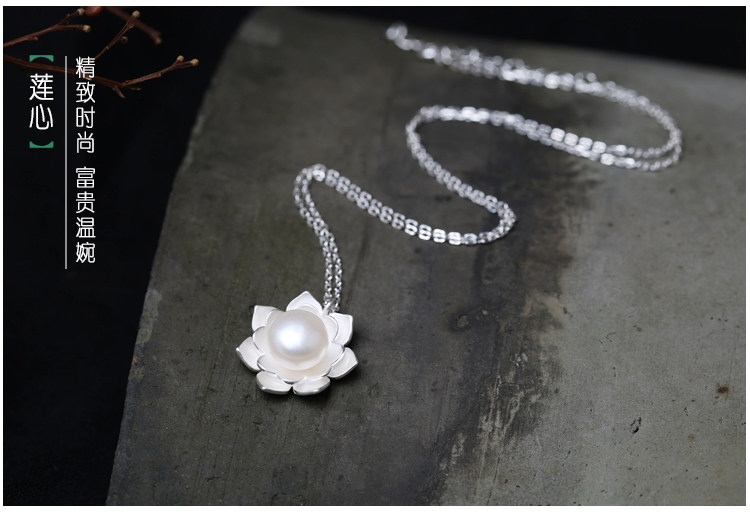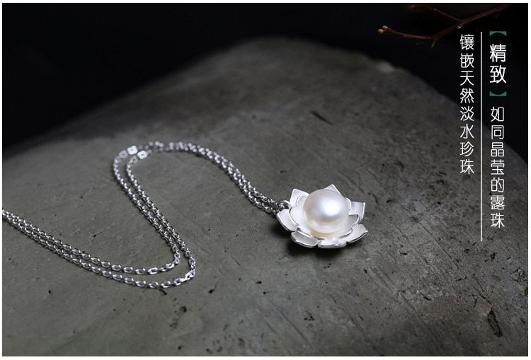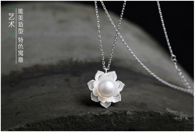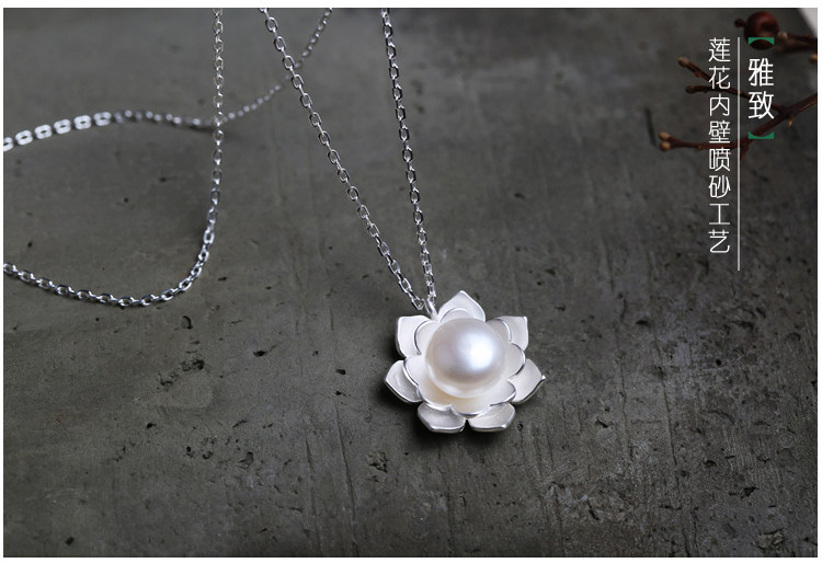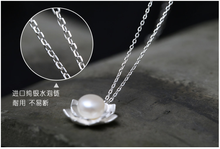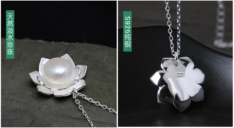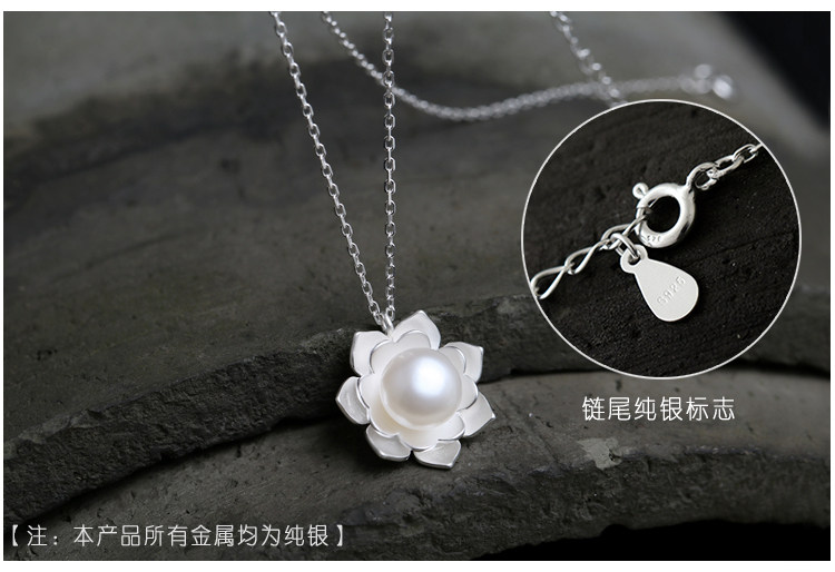 天然珍珠项链女 s925纯银莲花吊坠日韩锁骨链饰品 生日母亲节礼物