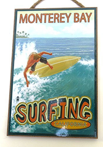 Monterey Bay , California, Souvenir, Wall Decor, Wood Wall Plaque, 10"x7", Surfing Boy