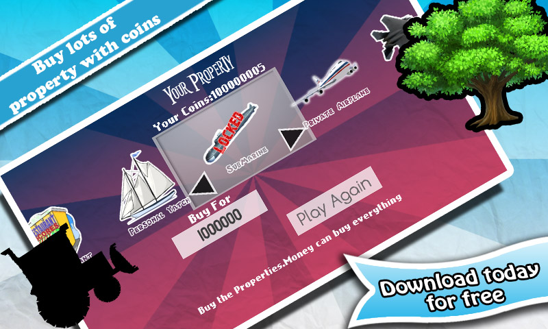- Feature : 1 or 2 player battle mode. / Earn coins as you save trees. / Unlock high end items, the sports car, the jet, even buy the earth. / Gamble and double your money against the other player if you win. / Beautiful relaxing music and calming art work.