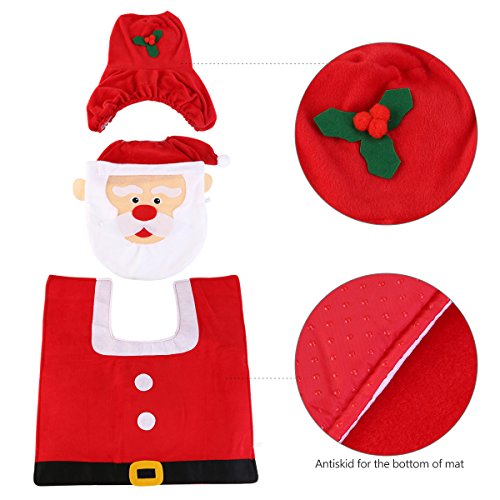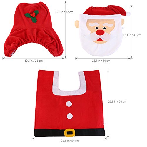 -. Brand : NICEXMAS -. Color : Red -. EAN : 0190657288460 -. Feature : Great Addition for Christmas Holidays - Have your bathroom ready for the season with our wonderfully unique Happy Santa toilet seat cover rug set. Bring the happiness and joy of Christmas to your bathrooms. A must buy for bathroom decor. / Premium Material - Made from soft plush material, feel smooth and comfortable in the hands. / Perfect for Standard Toilet -The Santa toilet lid cover measures 16.1 x 13.4 inch;the Santa toilet rug measures 21.3 x 21.3 inch;and the Santa tank cover with tissue box cover measures 12.2 x 12.6 inch. / Impressive Design - Cute design to decorate your bathroom for Christmas holidays. The seat cover set features an elastic snug fit. Great for turning a boring old bathroom into a jolly Christmas wonderland. / The greatest gift for those Christmas loving friends. It's the ultimate Christmas decoration that is guaranteed to make people smile! -. ProductGroup : Home -. ProductTypeName : HOME_BED_AND_BATH -. Title : Santa Toilet Seat Cover and Rug Set Christmas Bathroom Sets for Christmas Decorations by NICEXMAS -. UPC : 190657288460