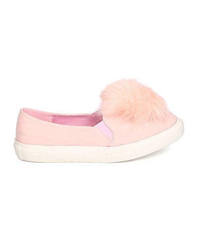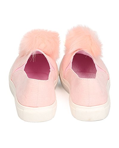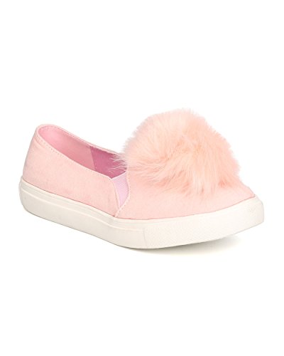Women Pom Pom Slip On Sneaker - Casual, Trendy, Everyday - Furry Flat - GD24 By Liliana