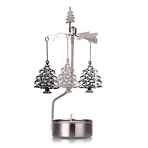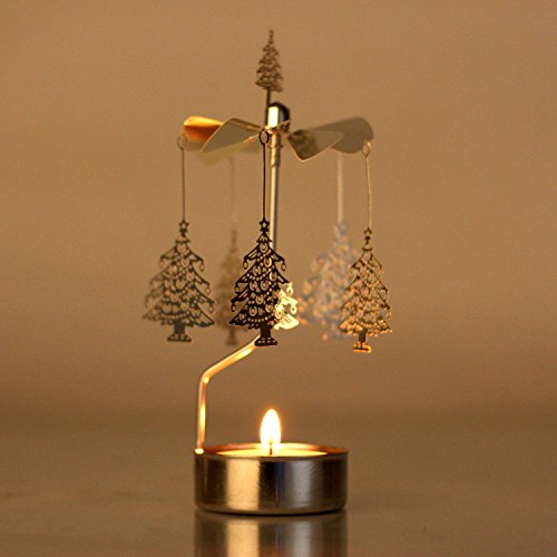 Studio : Mustaner Publisher : Mustaner Binding : Kitchen Product Description 1.They will start to spin and then they seem to slow down and will even stop ,after a while they will re-spin, this is normal status,if the heat is too hot ,the blades will always spinning 2.the candleholder size is 6.5"*3", is smaller gift 3.please do not touch the top bar that supports the spinning blades when the candle is in use. VERY hot! 4.please don't let children touth when the candle in use 0