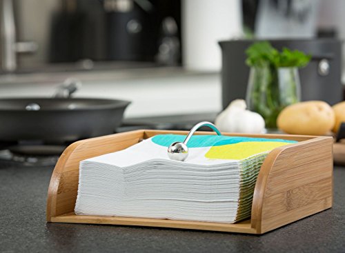 Modernhome Bamboo Napkin Holder with Stainless Steel Weight Guide, Kitchen Countertop Design, Natural