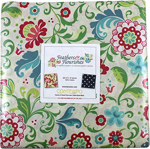 Amanda Murphy Feathers & Flourishes 10X10 Pack 42 10-inch Squares Layer Cake Benartex