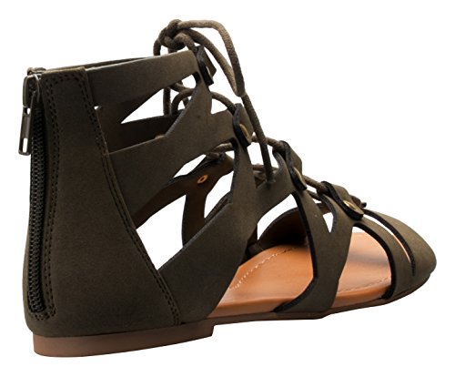 OLIVIA K Women's Strappy Gladiator Flat Sandals- Casual Dress Low Flat Heel- Ankle Strap Lace U...