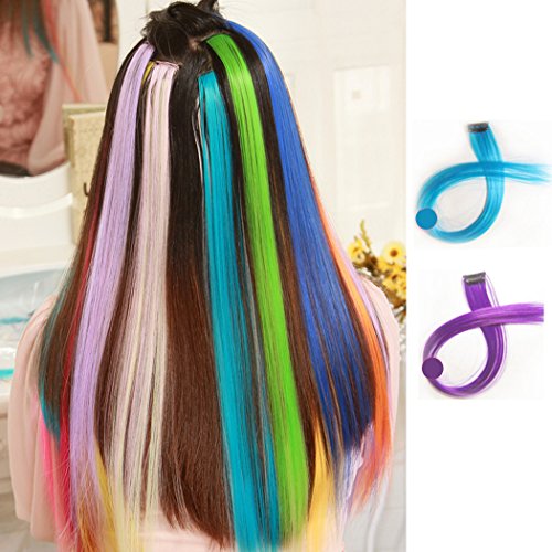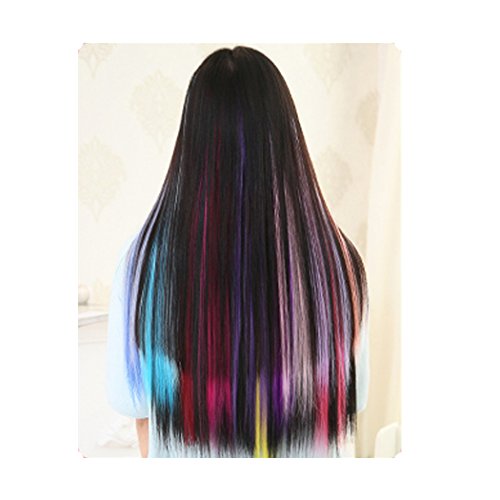 Multi-Colors 6 Pcs Hair Extensions Colored Hair Pieces Synthetic Fiber Rainbow Colorful Wig Clip (20-Inch Straight, 6 Pcs Multiple colors)