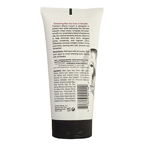 Truman’s Shave Cream is designed to protect skin while delivering the ultimate smooth, close shave. Uniquely formulated with our proprietary blend of essential oils, bio marine extracts and pro vitamins to help eliminate razor burn, clogged pores, breakouts, and ingrown hairs. Effectively reduces irritation while it firms and tones, leaving skin soft, smooth and refreshed.