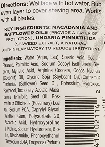 Directions: Wet face with hot water. Rub even layer to cover shaving area. Works with all blades.