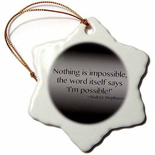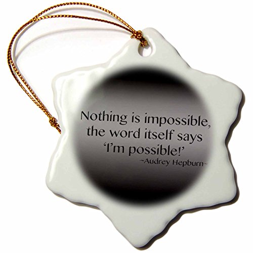 3dRose orn_130255_1 Nothing is Impossible The Word Itself Says 'I'm Possible'! Audrey Hepburn Snowflake Ornament, 3-Inch, Porcelain