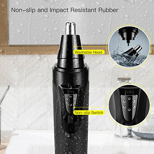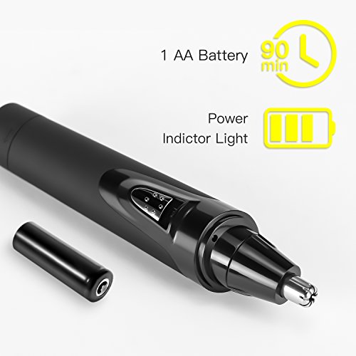 BATTERY POWER AND COMPACT: Cordless nose and ear trimmer runs up to 90 total minutes with one AA battery(not include),slimline and compact design makes it easy to fit into a men grooming kit.