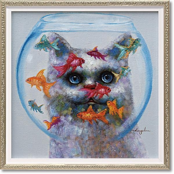 カラフルにハンドペイントされたキャンバスをリッチなフレームにセットしたモダンアートです。飾る場所を選ばない小型サイズ。