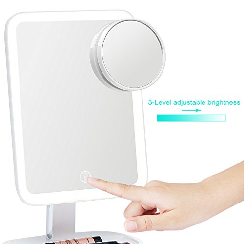 Three Adjustable Brightness :Warmth LED Light. The touch button could be used for turning the light on/off. Choose from soft warm, neutral white, and natural daylight.Perfect for making up all day long, even at nights.
