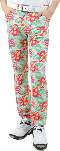 원본상품명: 【NewEdition GOLF】3D立?裁? フラワ?プリント アスリ?ト ストレッチ パンツ コットン 綿 【2015春~夏モデル】NEG-027PR (グリ?ン×レッド, M)