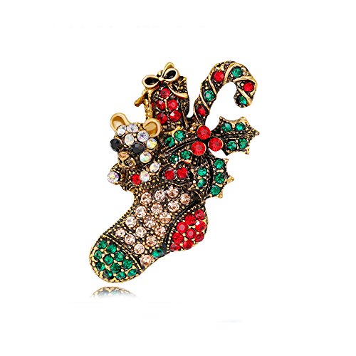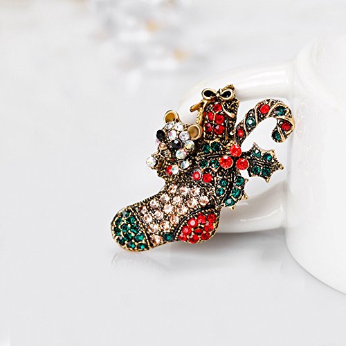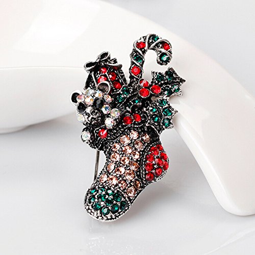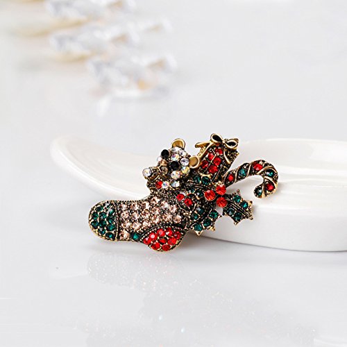 Christmas Brooch Pin Multicolor Rhinestone Xmas Socks Brooch Pins Women Breastpin Jewelry Gift
