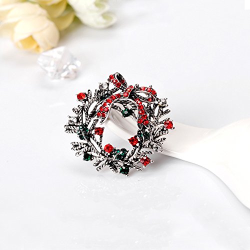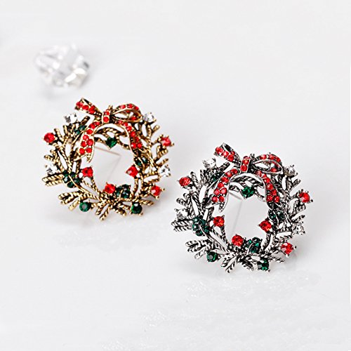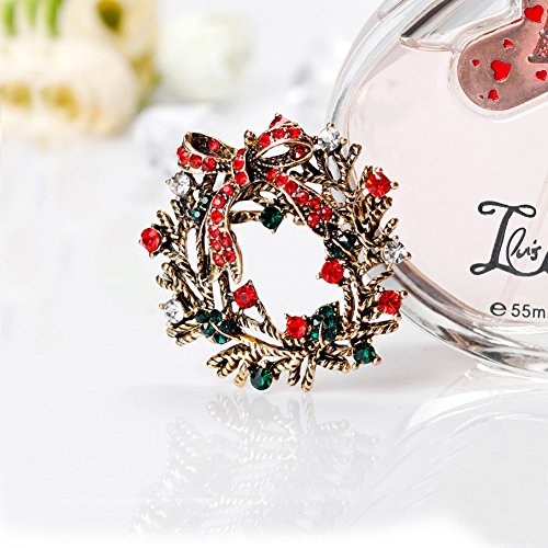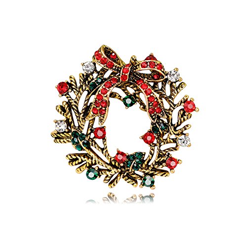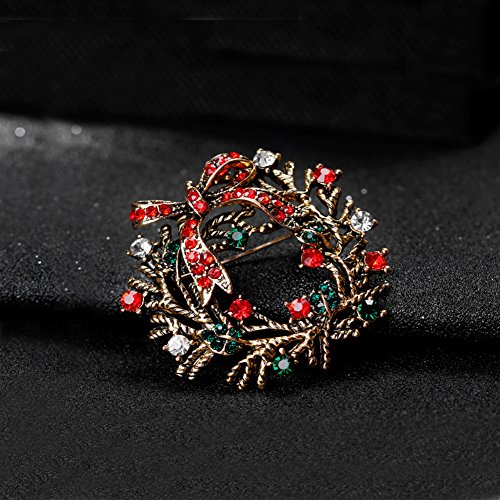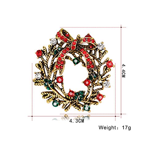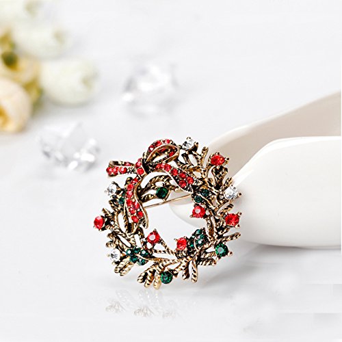 Christmas Brooch Pin Multicolor Rhinestone Xmas Wreath Brooch Pins Women Breastpin Jewelry Gift