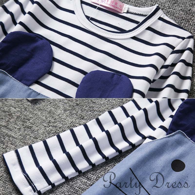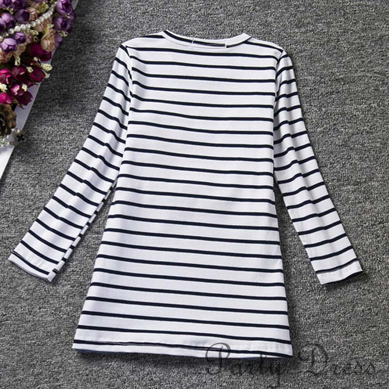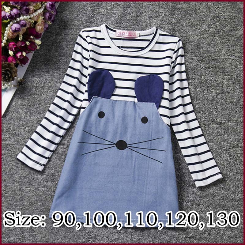 送料無料 2016新作 キッズ 子供服 女の子 長袖 ワンピース ネズミ 動物 ボーダー かわいい 韓国