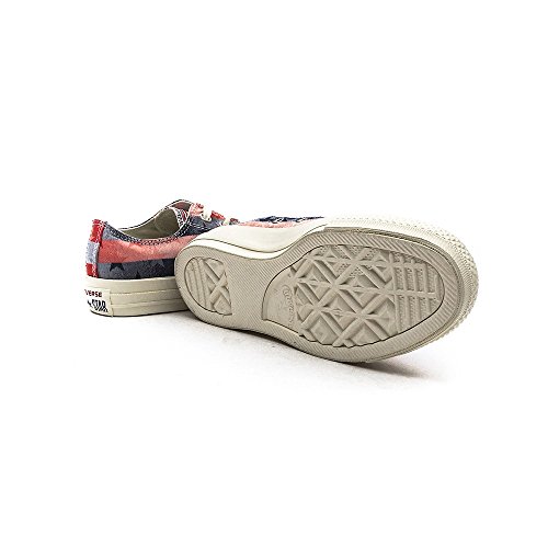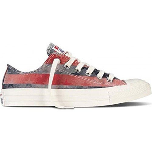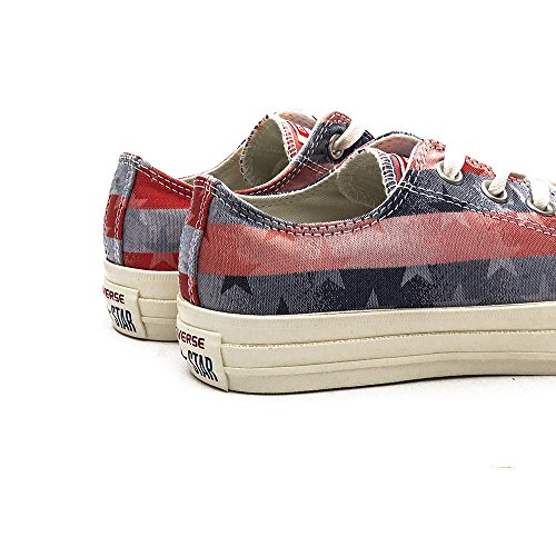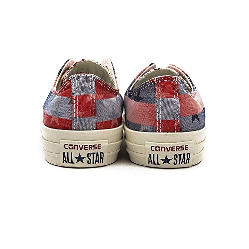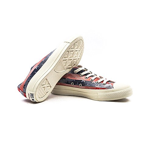 Keeping that all-American classic title, the Chuck Taylor Americana Low Top Sneaker shows its patriotic side with a stars and stripes canvas upper, while maintaining traditional Chuck Taylor style with a rubber mudguard and toe cap.