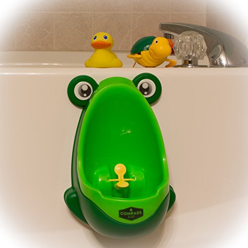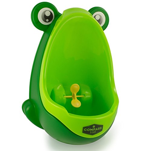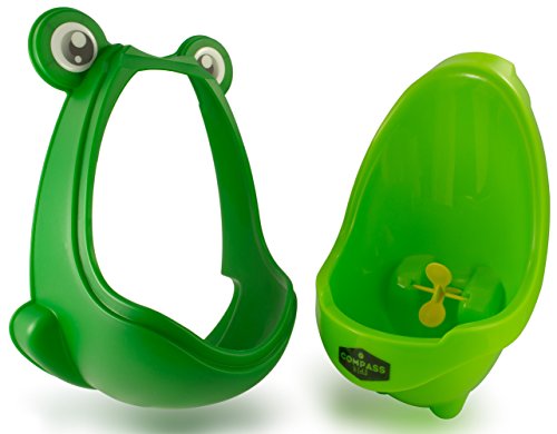 BEST POTTY TRAINING URINAL FOR BOYS BY COMPASS PROVISION CO. | FROG SHAPED PORTABLE URINAL FOR TODDLERS & KIDS AGES 1-6 | FREESTANDING URINAL INSERT | STRESS FREE POTTY TRAINING | IDEAL FOR TRAVEL