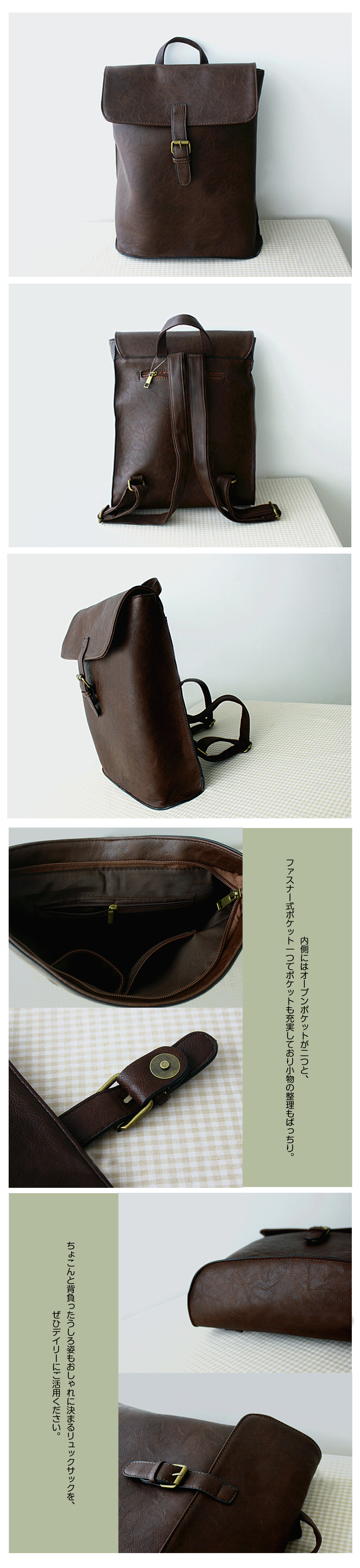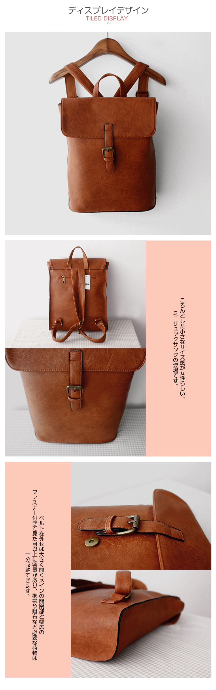 | ころんとした小さなサイズ感が女性らしい、ミニリュックサックの登場です。ベルトを外せば大きく開くメインの開閉部と幅広のファスナー付きで見た目以上に容量があり、携帯や財布など必要な荷物は十分収納できます。外側の背中にはファスナー式ポケットが一つ、内側にはオープンポケットが二つと、ファスナー式ポケット一つでポケットも充実しており小物の整理もばっちり。ちょこんと背負ったうしろ姿もおしゃれに決まるリュックサックを、ぜひデイリーにご活用ください。 | |