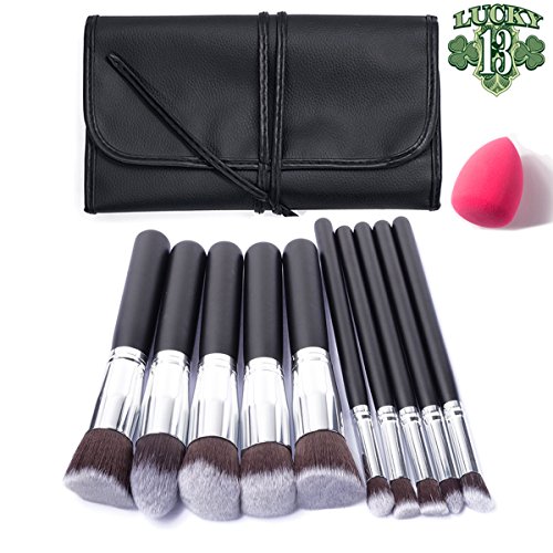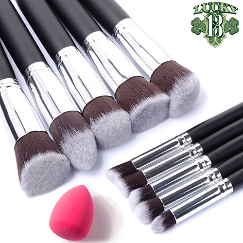 Makeup Brushes Set 13pcs Foundation Make up Brush Set Premium Synthetic Brush Blending Face Powder Blush Concealers Eye Shadows Make Up Brushes Kit with Makeup Sponge and Makeup Bag Black/Silver