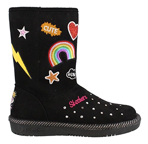 Girl's Skechers, S Lights Glamslam Patch'N Up Boots Fabric upper with rhinestones, fun patch detailing and logo accents for added appeal Colorful lights on the front panel blink with every step Side zipper closure for an easy on and off Soft faux fur and fabric linings Cushioned footbed for added comfort Fleible manmade outsole. Heel Height of 1.00 inches