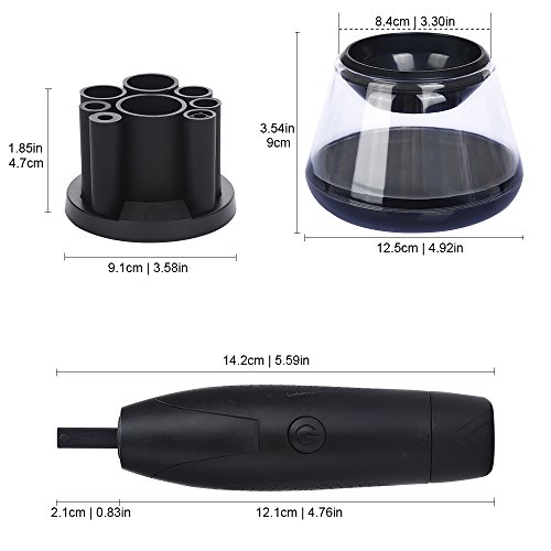 - Features: 1. With a bowl, no water splashing during the rapid rotation; 2. You can use it immediately after washing, just need a moment to dry; 3. Non-slip design can hold the handle of the brush firmly; 4. The switch has high and low two levels; 5. With 8 Flexible Silicone Collars, which is suitable for all sizes of brushes