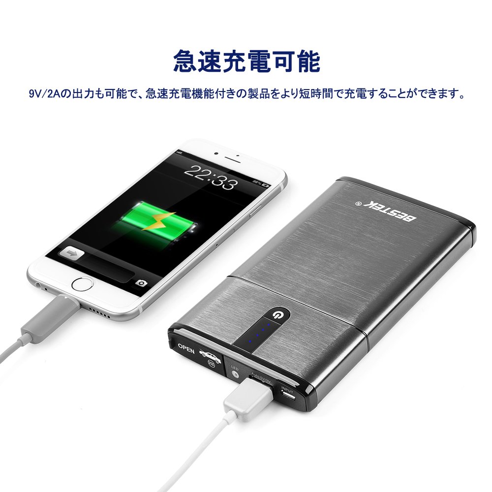 USB output: 5 V / 2.4 A, 9 V / 2 A (for rapid charging)