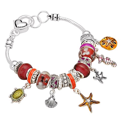 -. Feature : Bracelet features murano glass beads, highly detailed spacer beads and dangling beach theme charms / Thick silver tone snake chain with a large lobster clasp closure / 7 inch length with 3 inch extension, fits small to medium wrists / Beautiful Style bead charm bracelet / This beautiful bracelet is a great accessory to any outfit
