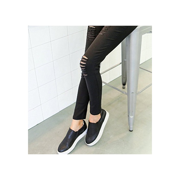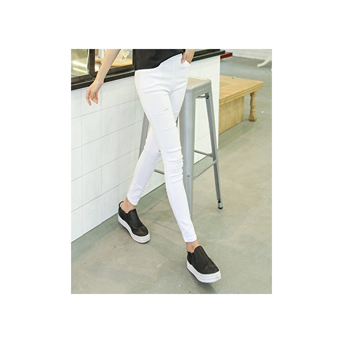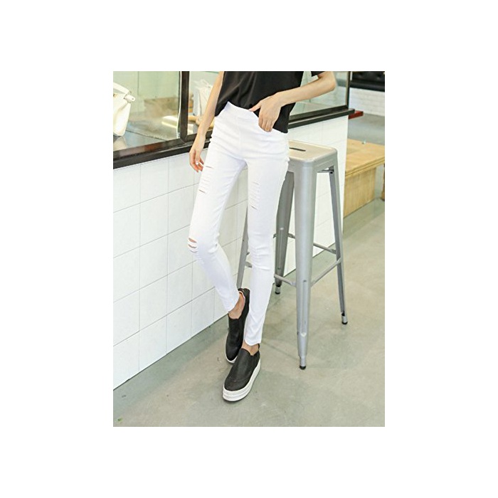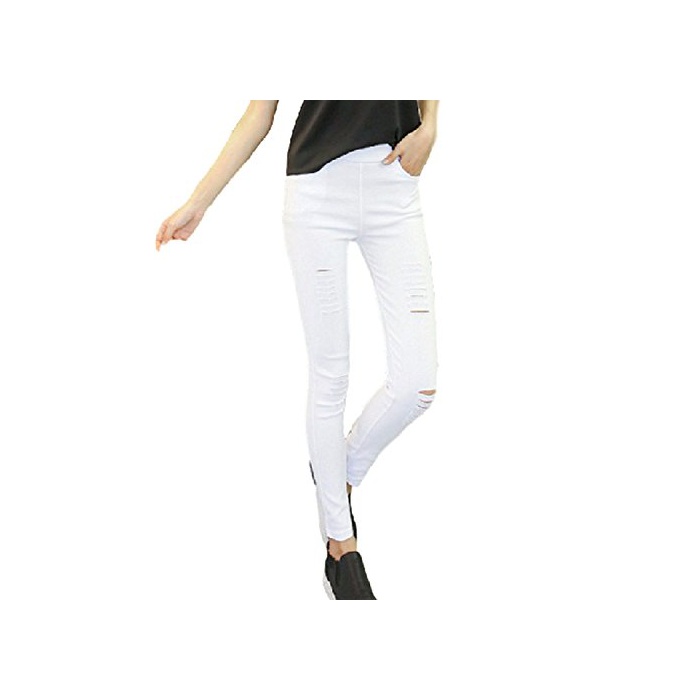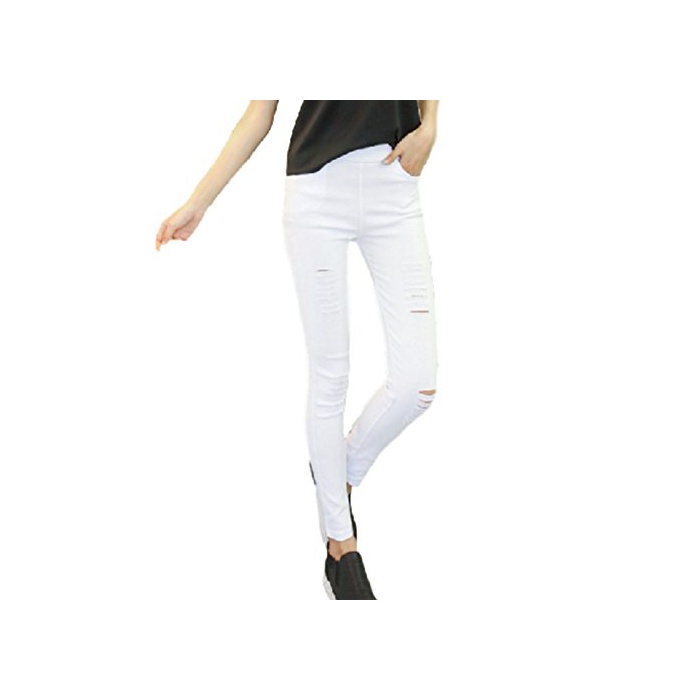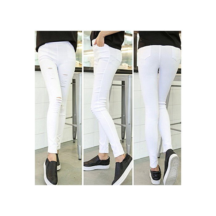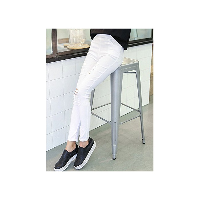 (배《푸》) PEPU 데미지 가공 진즈 데님 바람 레깅스 팬츠 스패츠(Spats) 구멍난 스트레치 레이디스 캐주얼 (화이트 M)