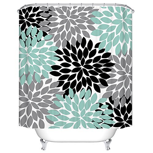 Black Grey Green Dahlia floral Shower Curtain - Polyester Fabric Bathroom Curtain 66" x 72"