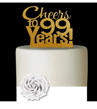 CakeSupplyShop Item#099CTA - 99th Birthday / Anniversary Cheers Super Gold Glitter Sparkle Elegant Cake Decoration Topper