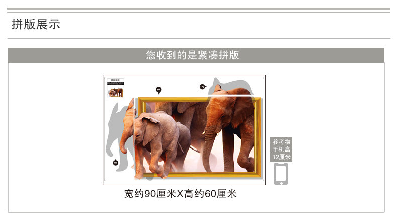 Sizes, "you receive the goods and typesetting" size and "collage after size reference"