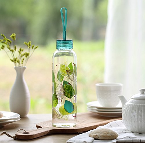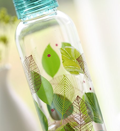 Glass Water Bottle with Leak Proof Lid BPA Free Double Sided Decal 20oz. Flower and Bird By CYPRESS