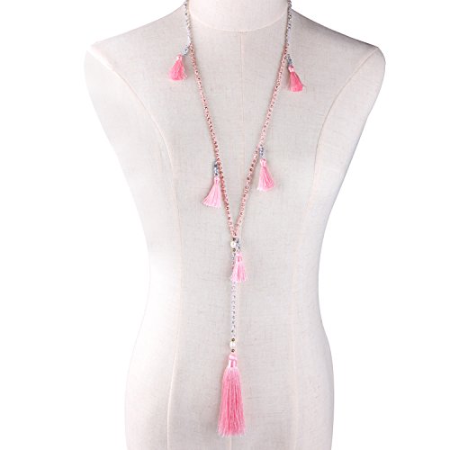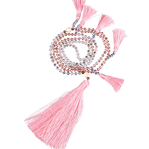 Necklace length: 38 inches(appr 96.5cm), pendant length: 9 inches(appr 22.8cm), tassel length: 4 inches(10cm), crystal beads 4mm, prael 10mm