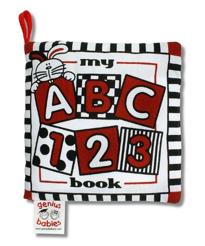 It's never too early to start reading to baby! Baby's My First ABC - 1,2,3 Soft Cloth Book by Genius Baby Toys in high contrast infant stimulation colors of black, white & red. Book includes 1,2,3's and A,B,C's. size 5 by 5 inches. Age appropriate birth and up.