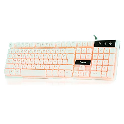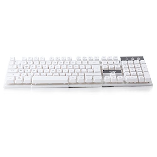GAMER'S EQUIPMENT:104 keys, 26 keys non-conflict, mechanical feel keyboard, strengthened space key. Specially designed keys for enhanced durability and tactile feedback, mechanical keyboard feeling.